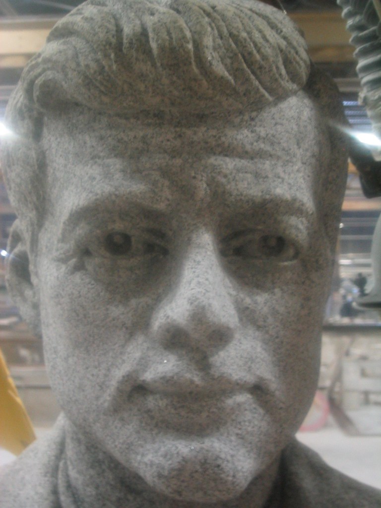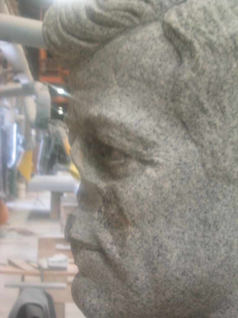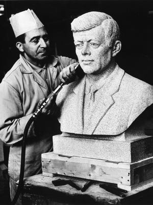 Bruno Sarzanini carving the origional bust of JFK. 1967